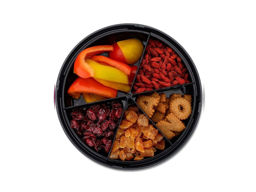 Box má čtyři menší a jednu větší přihrádku. I když s ním pořádně zatřesete, jídlo se nepromíchá.