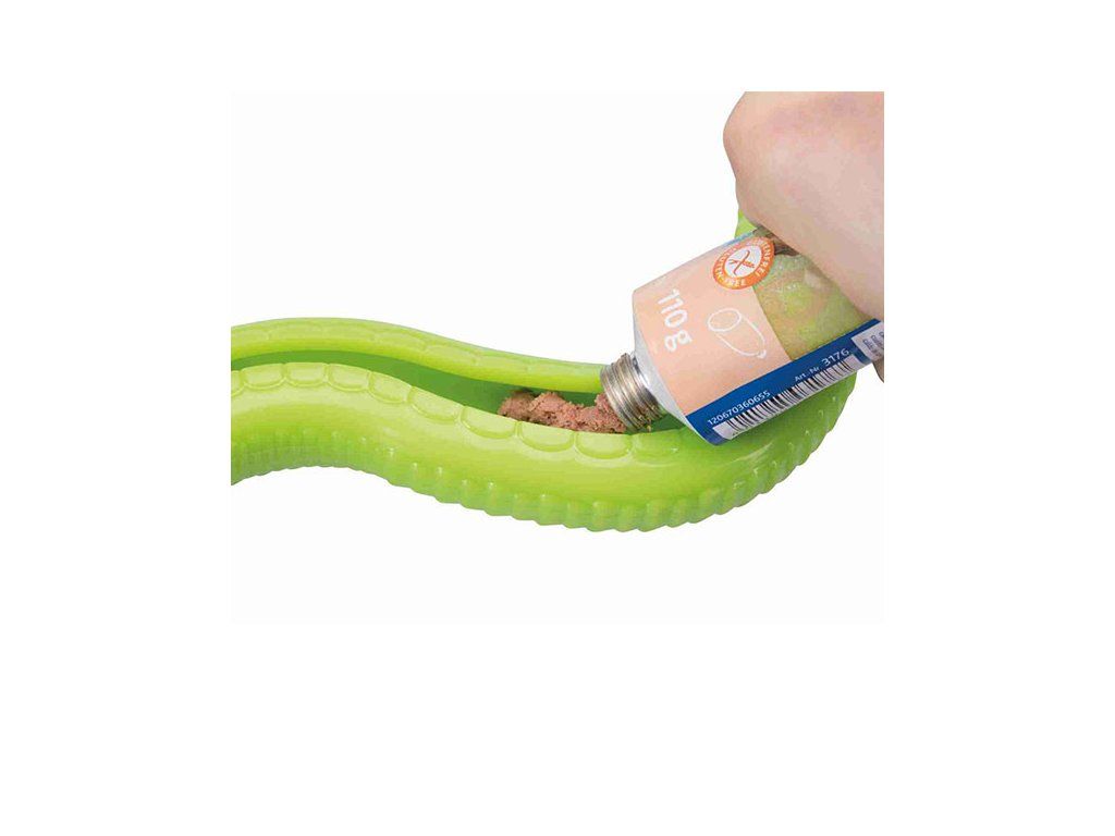 - 🐍 Dlouhá drážka pro maximum dobrot: Břicho hada skrývá hluboký zářez, do kterého snadno schováte paštiky, másla, omáčky, konzervy nebo drobné granule.