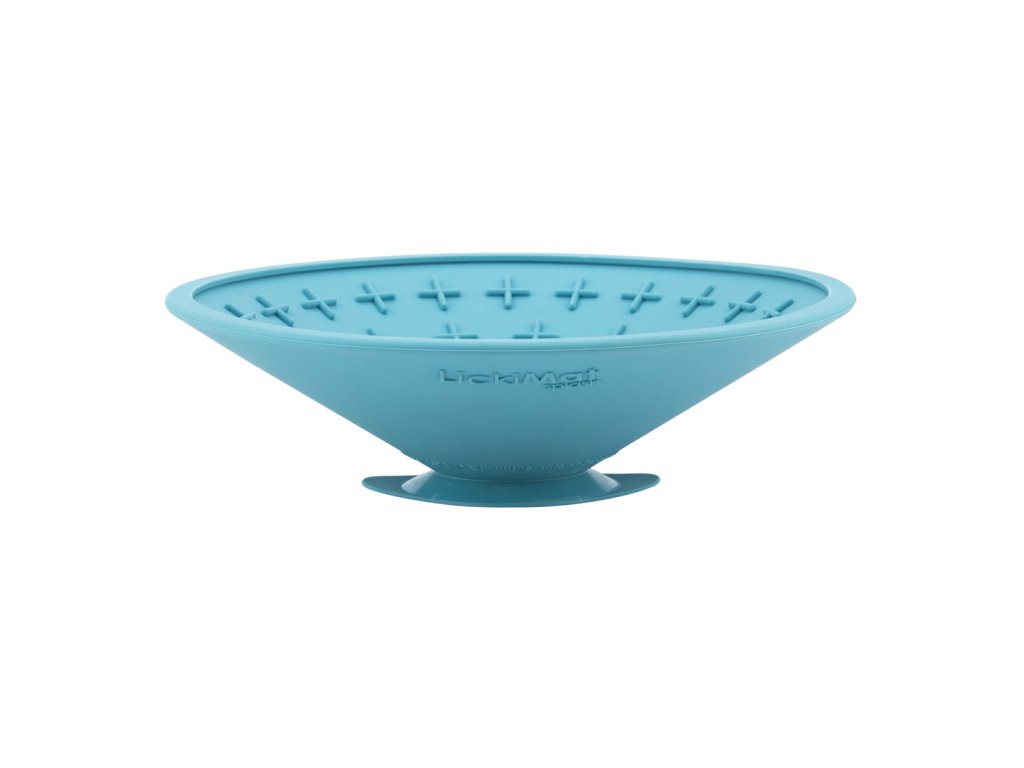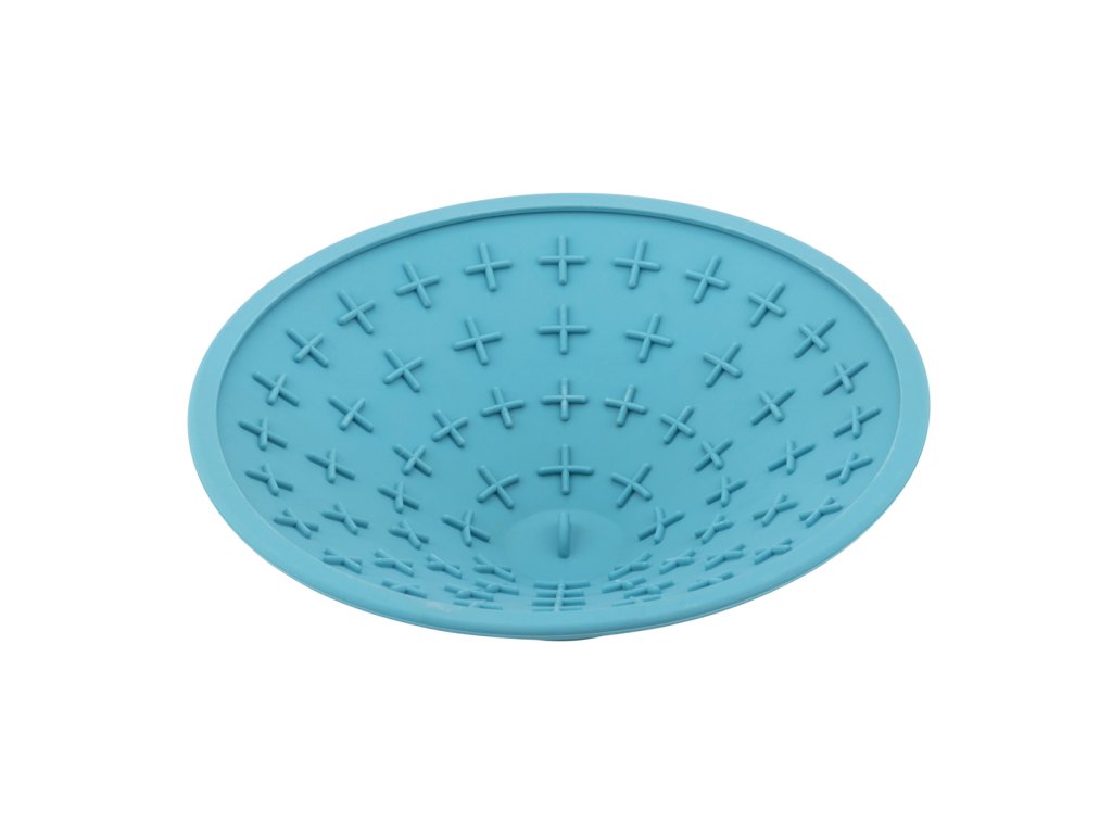 LickiMat® Splash™ je lízací podložka pro psy a kočky se silnou přísavkou, která se připevní na hladké povrchy, jako jsou dlaždice, sklo nebo vana, a pomáhá tak zklidnit a zabavit zvíře například během koupání nebo péče o srst.