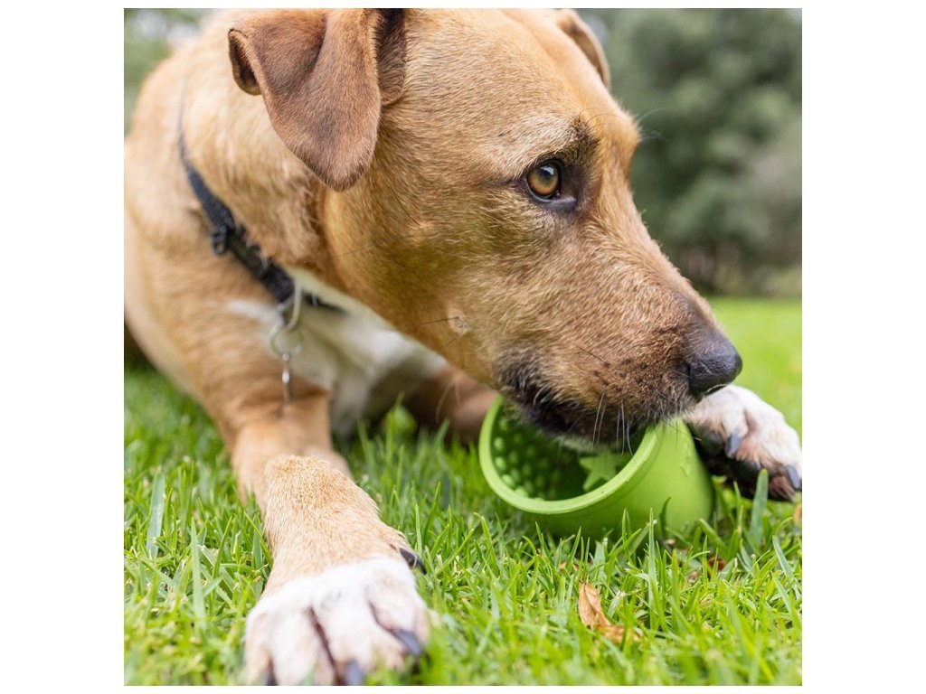 Lízací kelímek je pecka, když potřebujete psa na chvíli zabavit nebo uklidnit. Stačí ho naplnit čímkoliv, co má váš chlupáč rád – třeba jogurtem nebo paštikou. Pes se zabaví, přestane hltat a krásně se u toho hodí do klidu.