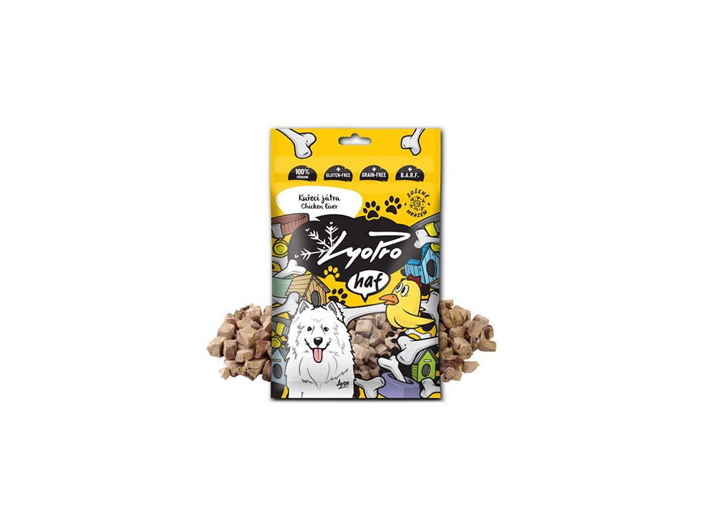 Odměňte svého chlupatého přítele lahodnou porcí lyofilizovaných kuřecích jater, kterým žádný pes neodolá. Křehká jatýrka neodolatelně voní a ještě lépe chutnají. Díky sušení mrazem neztrácí svou strukturu, čerstvou chuť, vůni ani živiny.