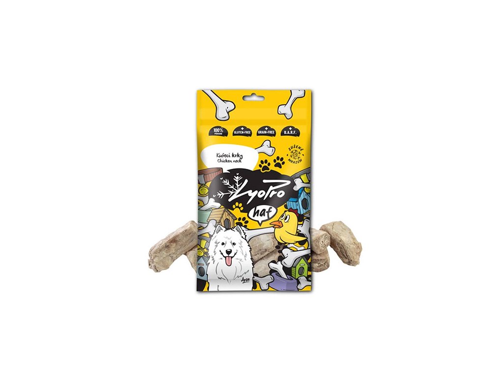 Hledáte pro svého parťáka pamlsek, který je v dokonalém souladu s principy BARF stravy? Právě jste ho našli. Naše lyofilizované kuřecí krky jsou tou nejčistší formou odměny. Jsou to celé kusy 100% kuřecích krků, které díky šetrnému sušení mrazem přináší radost z křupavého žvýkání, ale zachovávají si nutriční hodnoty syrového masa. Bez přidané chemie, soli a balastních látek. Jen poctivá a zdravá dobrota.