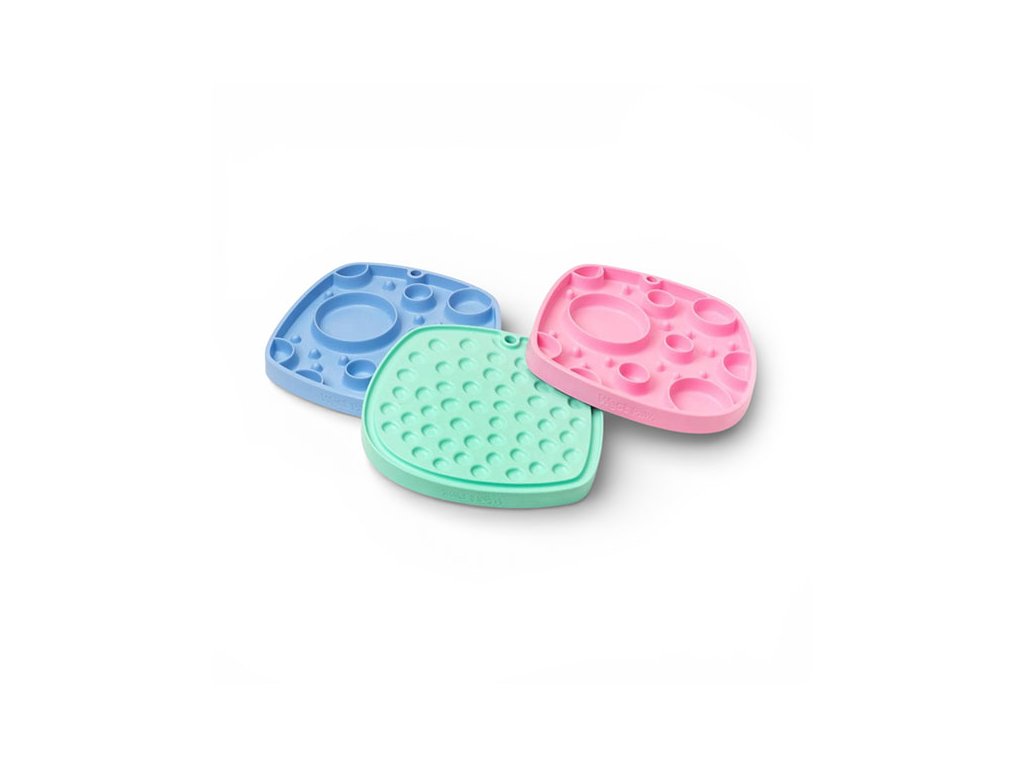 Podložka Feast Mat má rozměry 25.5 x 25.5 cm a vyrábí se ve dvou variantách: Waves s drážkami ve tvaru vlnek a Bubble s kulatými otvory. Vybrat si pak můžete z různých barevných variant.