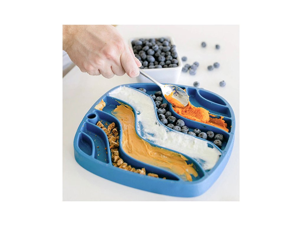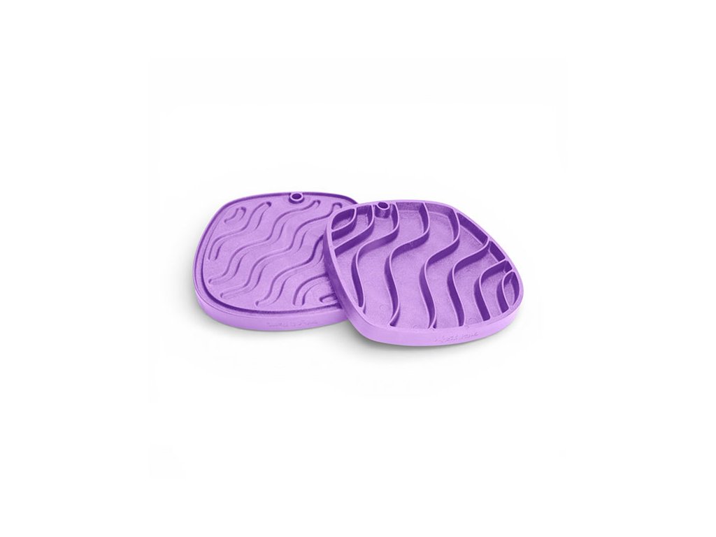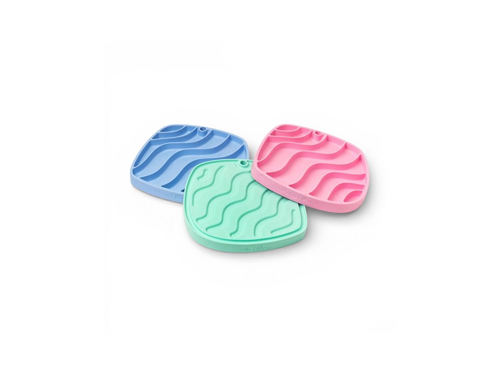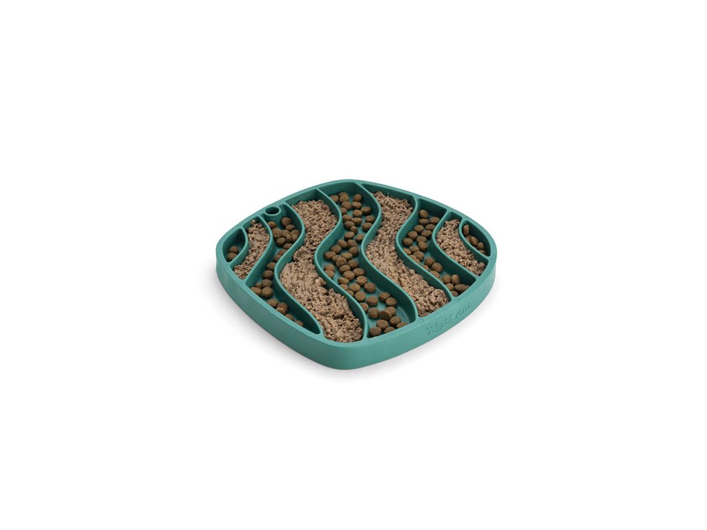 Podložka Feast Mat má rozměry 25.5 x 25.5 cm a vyrábí se ve dvou variantách: Waves s drážkami ve tvaru vlnek a Bubble s kulatými otvory. Vybrat si pak můžete z různých barevných variant.