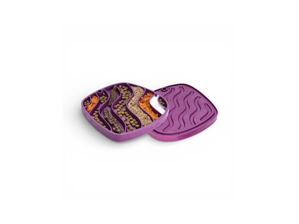 Z jedné strany má hlubší drážky, z nichž je pro psa těžší jídlo vydolovat, takže vše nezhltne tak rychle.