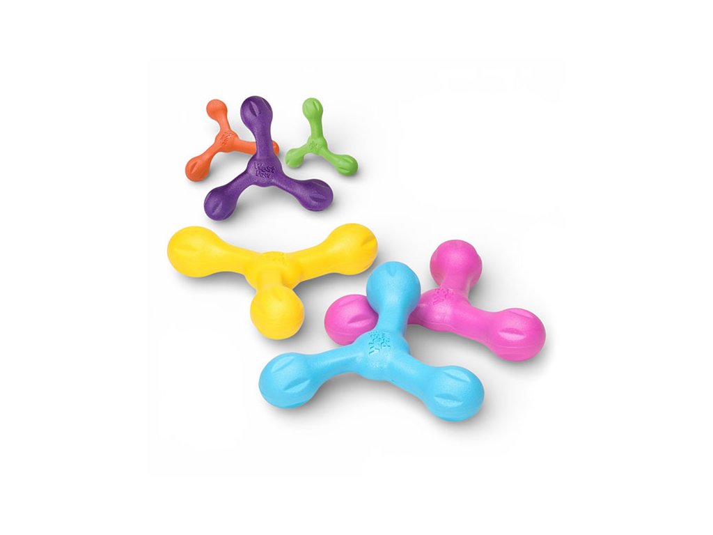 Skamp se ohýbá, kroutí a pruží, aniž by se lámal nebo třepil. Právě tato pružnost snižuje zátěž na zuby a čelisti, což ocení zejména psi, kteří rádi intenzivně koušou. Hračka je navržená tak, aby vydržela opakované hry i silnější tahání.